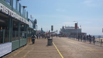 Wir haben den Santa Monica Pier besucht, was ich schon immer einmal machen wollte, aber wir sind keine Achterbahn gefahren, weil es ziemlich voll war und ich auch keine große Lust dazu verspürt hatte. Im Zusammenhang mit diesem Ausflug muss ich auch noch erwähnen, dass das Reisen durch die Stadt an sich ziemlich schwer und zeitaufwändig ist. Es gab zwar ein U-Bahnnetzwerk, aber Google Maps hatte uns meistens immer Buslinien als schnellere Verbindung angezeigt, die dann aber oft im Verkehr (sei es durch rote Ampeln oder zu viel Verkehr stecken geblieben ist). So hatte sich manchmal gleich die Fahrzeit mit dem Bus verdoppelt, obwohl wir schon den Rapidbus benutzt haben, während ein anderer sogar noch mehr Stationen mitgenommen hat. Nicht davon zu reden, dass unser sich mal für 10 min verabschiedet hatte und dann anscheinend doch die Schicht für seinen Kollegen einnehmen musste. Die Highways waren auch ziemlich voll, wobei ich mit der Autobahnsituation in Downtown Boston sehr zufrieden bin, da diese unterirdisch verlaufen, aber es auch hier ein paar komische Abzweigungen gibt, was anscheinend in jeder Großstadt der Fall sein muss.
