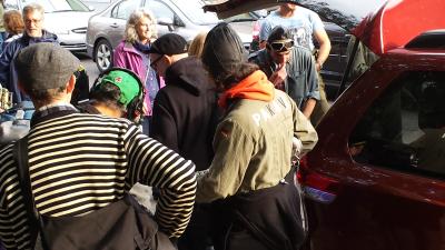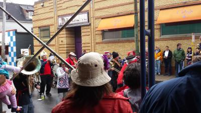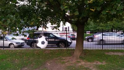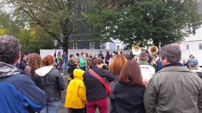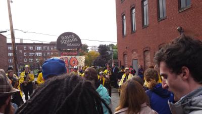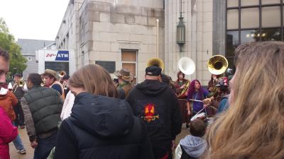 Heute (Samstag) und morgen (Sonntag) ist auch eigentlich modischer Geschmack überflüssig, da an diesem Wochenende das Honk-Festival stattfindet. Wenn das Honk-Festival eine Partei wäre, wäre sie ein Bündnis aus Links und Grünen. Die Bands und viele Besucher folgen in Bezug auf ihrer Kleiderordnung dem Motto Hippie oder Bad Taste (letzteres vor allem die Zuschauer wie ich finde). Das ist ein ziemlich verrücktes Spektakel und ich bin froh, dass ich das auch mal miterleben durfte. Die Musik war ein bisschen "funky" und die Stimmung richtig gut. Das Festival besteht aus Plätzen, die in ganz Somerville verteilt sind, wo verschiedene Bands von einer Stage zur nächsten ziehen. Als Andenken habe ich auch von meinen Gasteltern einen Button geschenkt bekommen, der schon seinen Platz an meiner Bauchtasche gefunden hat, wobei ich gespannt bin, ob ich noch mehr bekommen und diese neue Tradition werde (manche sammeln Aufkleber auf ihrem Koffer und da sammel ich halt eben Button an meiner Bauchtasche als Erinnerung).