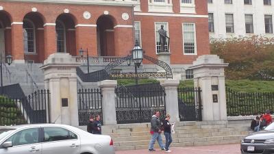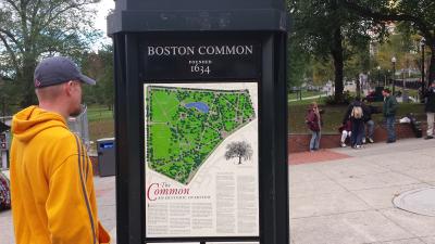 Wie ich schon geschrieben habe, bin ich dieser Backsteinlinie gefolgt, die viele der Bostoner Sehenswürdigkeiten verbindet. Ich startete meine Tour beim Boston Common, welcher der älteste Park der USA ist. Direkt angrenzend befand sich noch das Massachusetts State House, wo sich das Büro des Gouverneurs von Massachusetts befindet, und die Park Street Church, die direkt neben der gleichnamigen U-Bahn-Station "Park Street" liegt, wo ich wieder an die Oberfläche gekommen bin, und Schauplatz von William Lloyd Garrison's Brandrede gegen Sklaverei war (er war ein amerikanischer Schriftsteller). Direkt neben der Kirche liegt der Granary Burying Ground, wo z.B. Samuel Adams (ein Unterzeichner der Unabhängigkeitserklärung) und Opfer des Massakers von Boston beerdigt wurden. Nach ein bisschen herumirren meinerseits fand ich auch die King's Chapel, die auf dem Gelände erbaut wurde, wo vorher noch eine Kirche aus der Kolonialzeit stand. Direkt daneben steht die Old City Hall und in der Nähe ist auch das Old South Meeting House, eine Kirche aus der Kolonialzeit, in der die Boston Tea Party geplant wurde. Ein Stück weiter ist befindet sich das Old State House, welches das alte Rathaus von Boston ist. Auf dem Platz daneben fand das Boston Massaker statt, welches eines der Auslöser des amerikanischen Unabhängigkeitskrieges war. Wenn man der Tour ein bisschen weiter folgt, kommt man auch zu der Statue von Samuel Adams, die sich vor der Faneuil Hall befindet, welches eines der ältesten Gebäude Bostons ist und direkt gegenüber ist auch der Quincy Market, welcher die "Erweiterung" der Faneuil Hall ist und auch als Markt genutzt wurde. Unterwegs bin ich auch noch einer Gedenkstätte des Holocausts begegnet und wurde wieder mit der Schuld der Deutschen konfrontiert und ich fand es auch sehr interessant zu wissen, das die Amerikaner auch daran gedenken. Ein ganzes Stück weiter fand ich auch Paul Reveres Haus, welches dem amerikanischen Freiheitskämpfer gedenkt und was ich laut der Meinung eines meiner Gastkinder unbedingt gesehen haben sollte. In der Nähe war dann auch Paul Revere'S Statue und die Old North Church, die historisch sehr wichtig mit Paul Revere in Zusammenhang steht. Bevor ich mich daran machte den Charles River zu überqueren, besichtigte ich noch den Copp's Hill Burying Ground, welcher ein Friedhof auf einem Hügel ist, welcher den Ausgangspunkt der Briten bei der Schlacht vom Bunker Hill darstellt. Auf der anderen Flussseite liegt noch die USS Constitution, welches das älteste noch schwimmende Kriegsschiff der Welt ist und das dazugehörige Museum. Außerdem besuchte ich auch noch das Bunker Hill Monument, welches hoch oben auf einem Hügel über Boston thront und an einer der wichtigsten Schlachten zu Beginn des amerikanischen Unabhängigkeitskrieges gedenkt. Danach machte ich mich dann wieder auf den Heimweg.