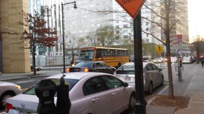 Auf dem Rückweg habe ich es auch mal geschafft so einen typischen amerikanischen Schulbus zu fotografieren und auch schon die erste Weihnachtsdeko gesehen.