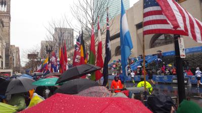 Am Montag war auch der Boston-Marathon, wo ich zwar hingegangen bin, aber leider nicht so viel hatte, da mein Gastpapa zu hause war, aber trotzdem arbeiten musste und er so nur ein paar Stunden erübrigen konnte, um auf die Kinder aufzupassen, während ich weg bin und da ich mit der U-Bahn gefahren bin und noch ein bisschen laufen musste, blieb insgesamt wenig Zeit zum besichtigen übrig. Außerdem war das Wetter leider sehr ungünstig, da es gegen Mittag zu regnen angefangen hat, wodurch alles kalt und nass wurde und am Ziel Thermodecken für die Läufer gereicht wurden, welche da ziemlich elend aussahen (sowohl wegen der Nässe als auch der Anstrengung).